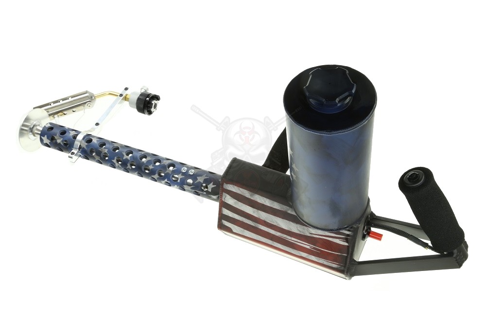 Upgraded custom paint OLD GLORY finish by the famous BLOWNDEADLINE! THIS IS A LEFT HANDED, Generation 3 MODEL! THE FIRST AND ONLY: The XM42 is the world’s first fully handheld, grab and go flamethrower on the market. No heavy pressurized tanks, no silly car-wash sprayers.